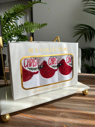 Christmas Bird Design Gift Towel Set - Colourful Embroidered