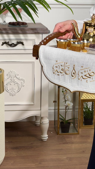 Afia Design Tray Cover - %100 Linen Fabric - Gold Embroidered