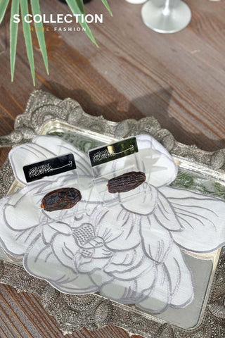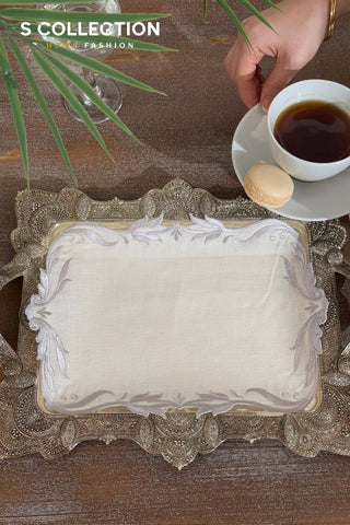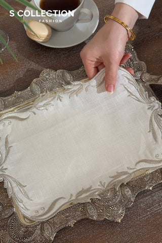 Classy Design Tray Cover - %100 Linen Fabric - Silver Embroidered