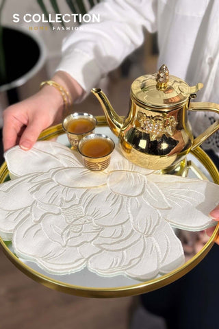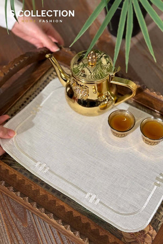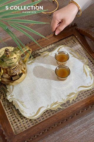 Charlotte Design Tray Cover - %100 Linen Fabric - Gold Embroidered