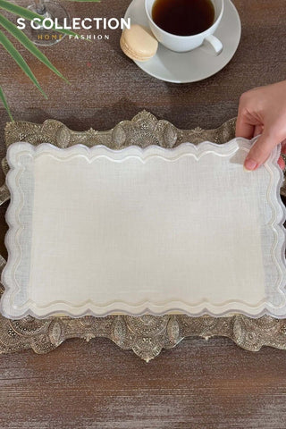 Charlotte Design Tray Cover - %100 Linen Fabric - Off White Embroidered