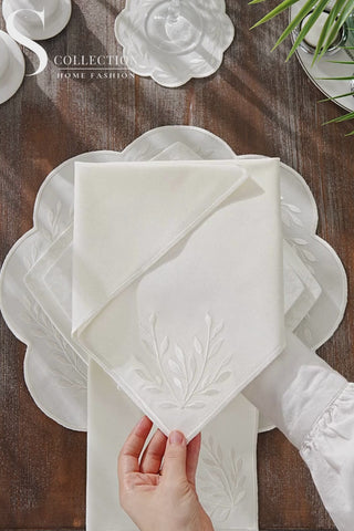 Chantal Off White Design Placemat Set - Waterproof Fabric - 6 Persons - 24 Pcs. Full Set