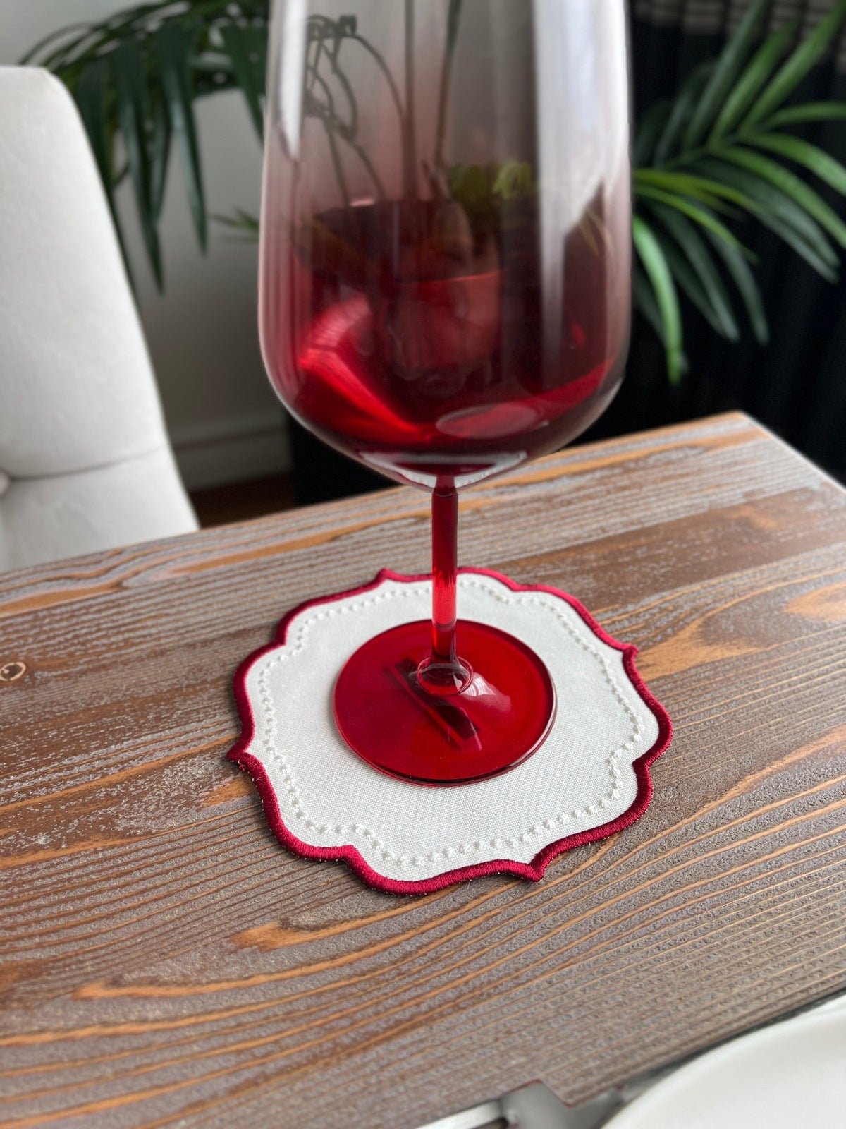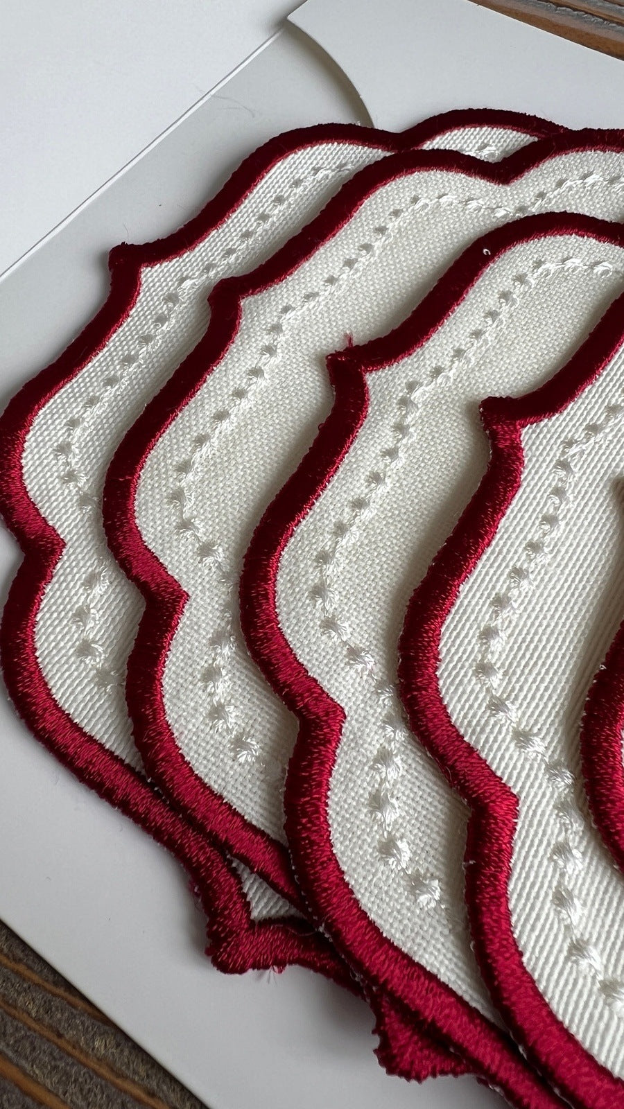 Elise Design Cocktail Napkin - Waterproof Fabric - Burgundy Embroidered
