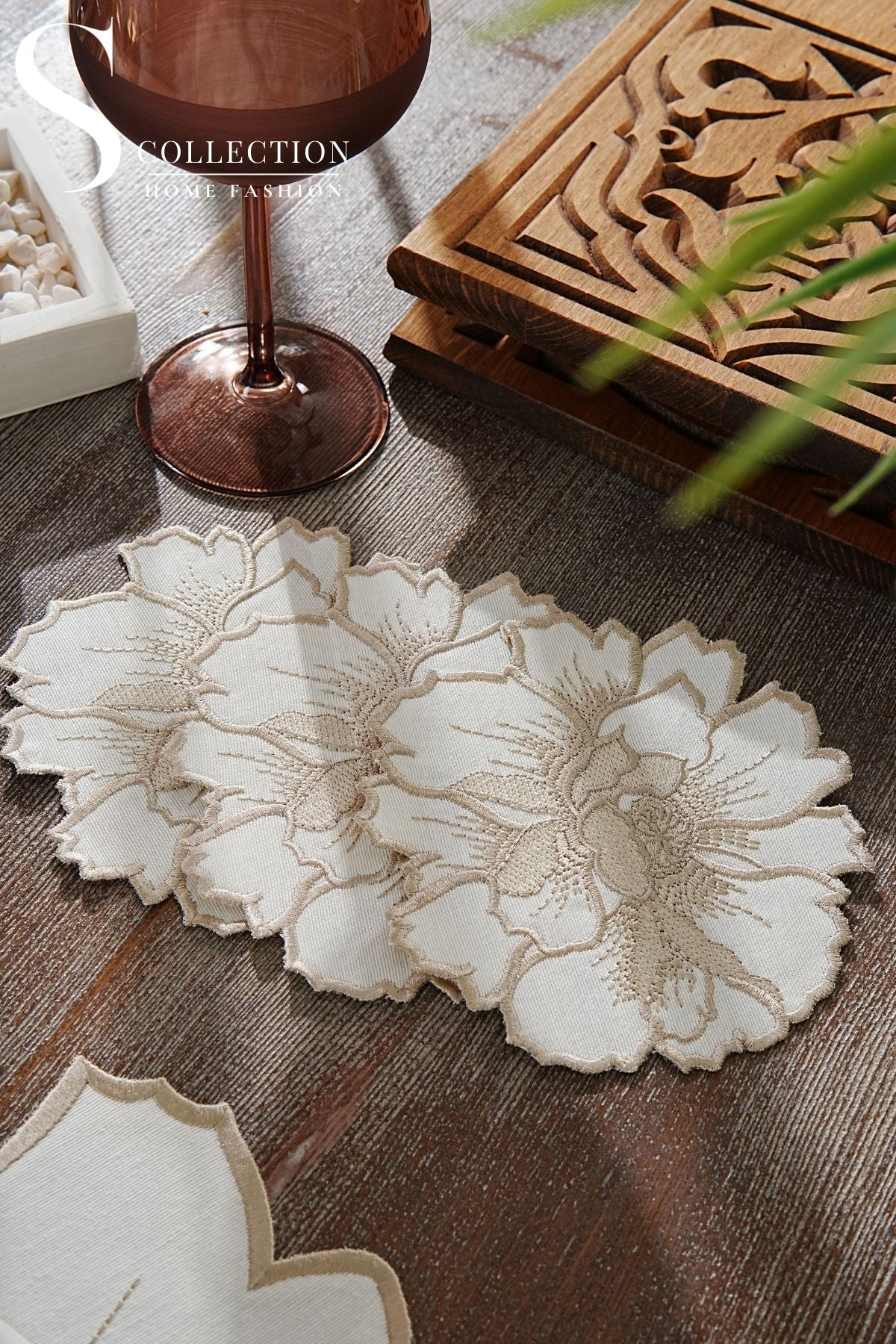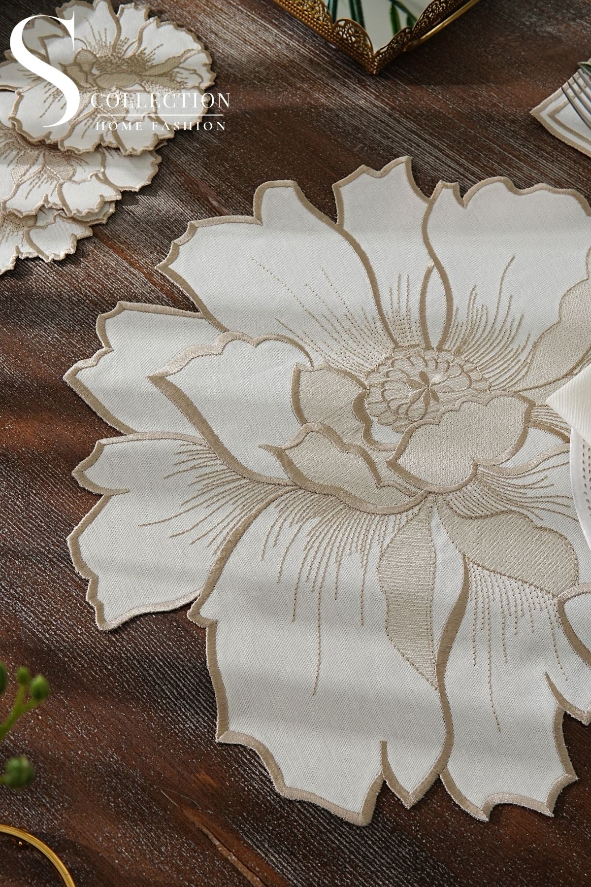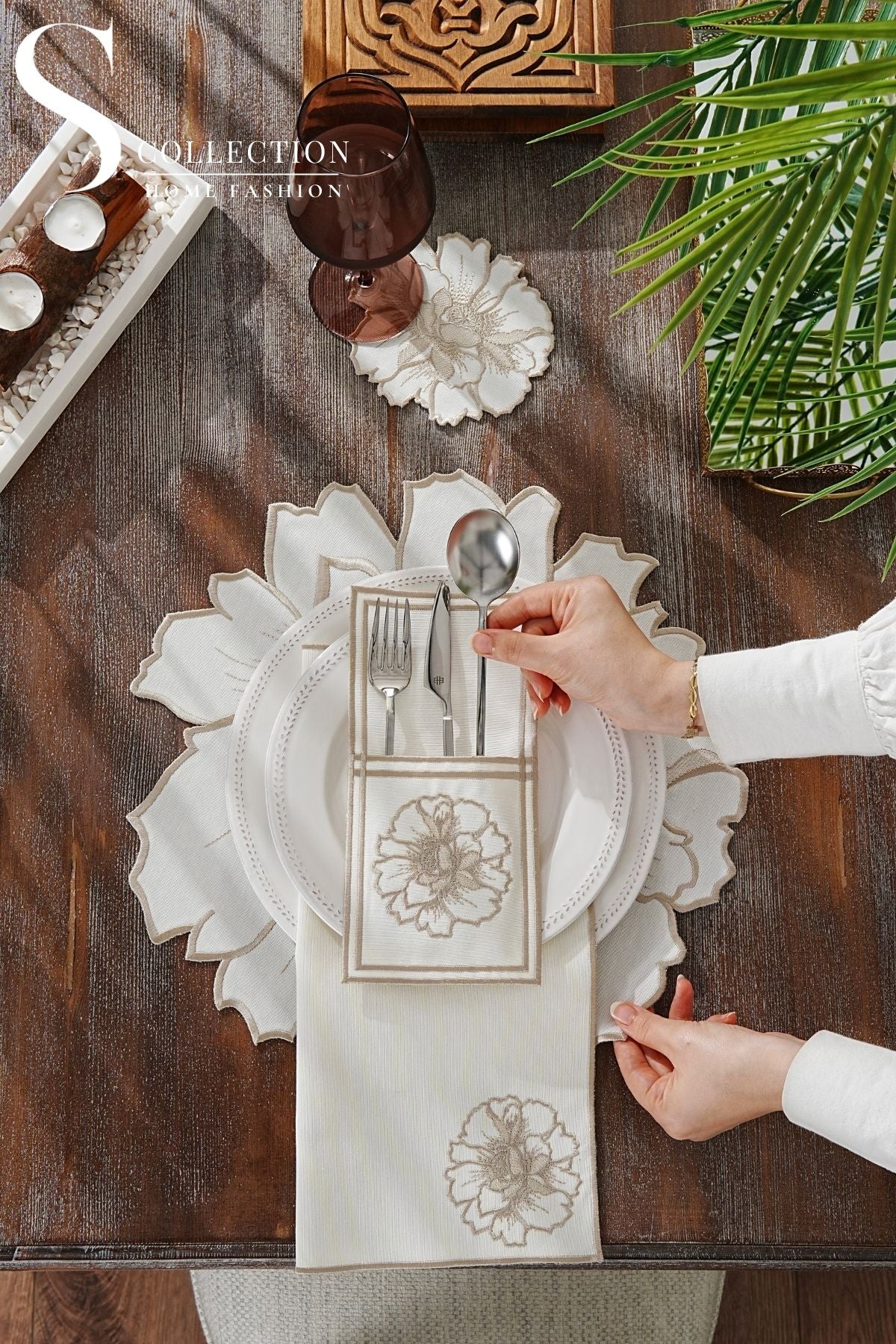 Eloise Cappuccino Design Placemat Set - Waterproof Fabric - 6 Persons - 24 Pcs. Full Set