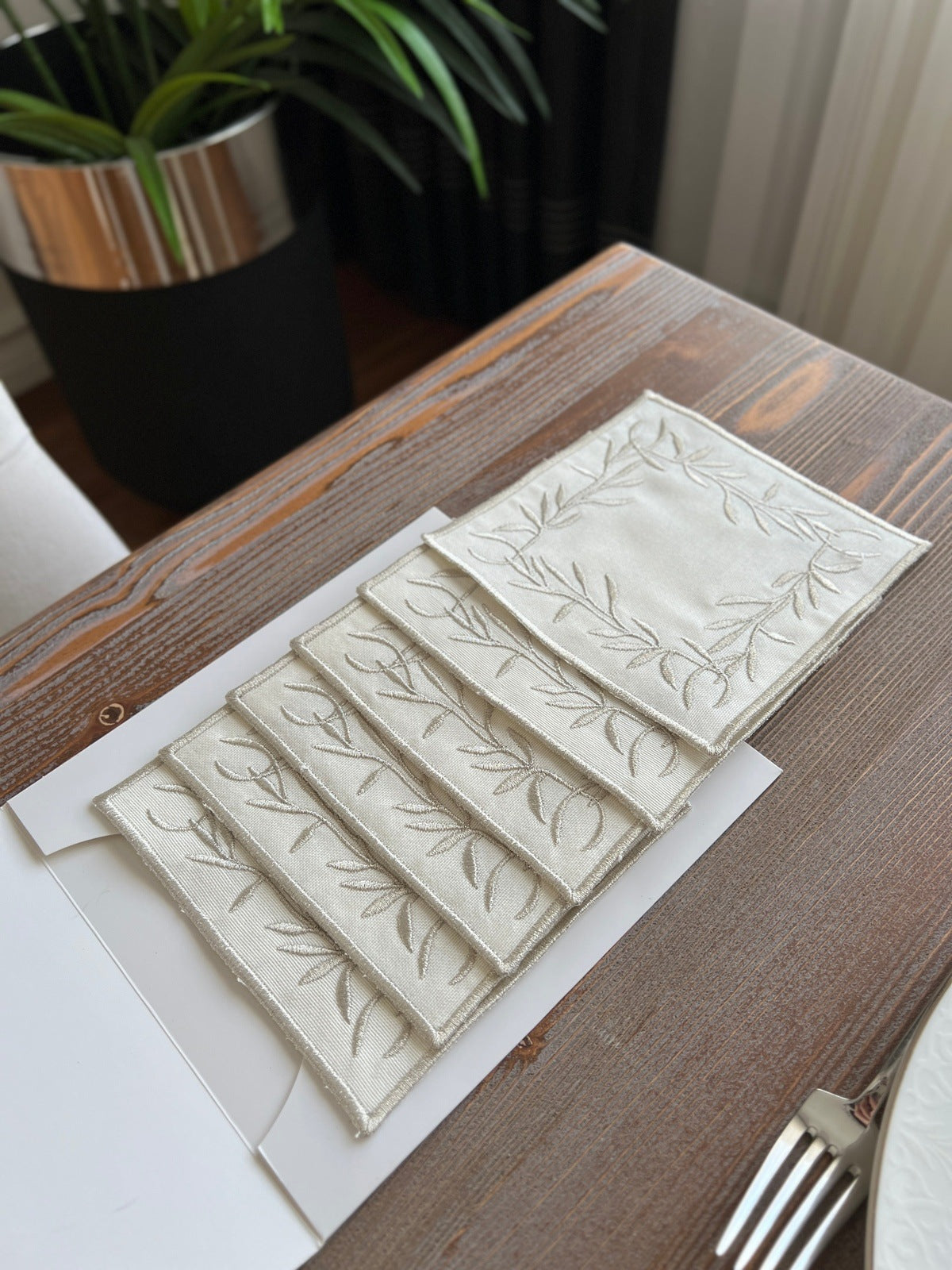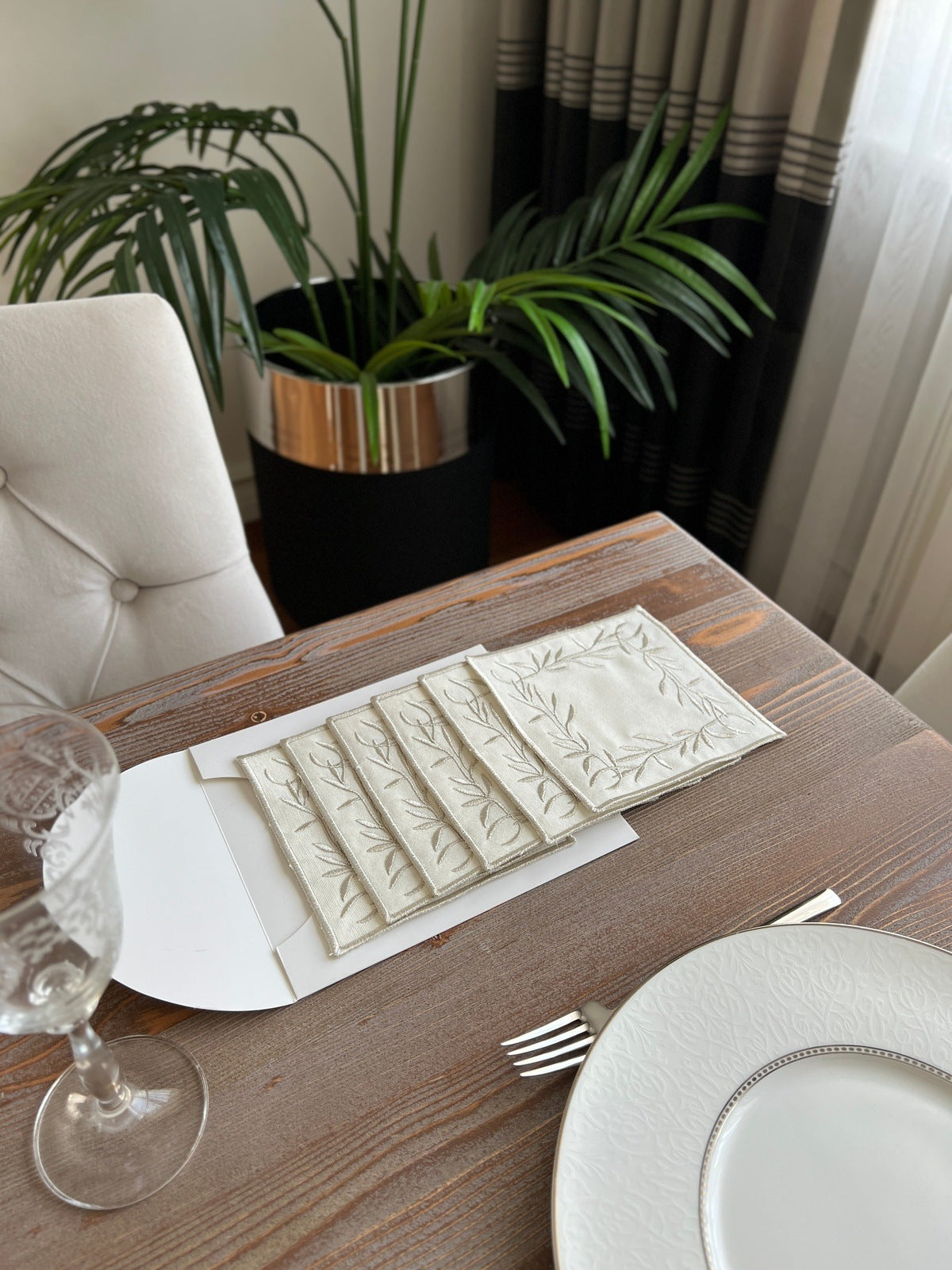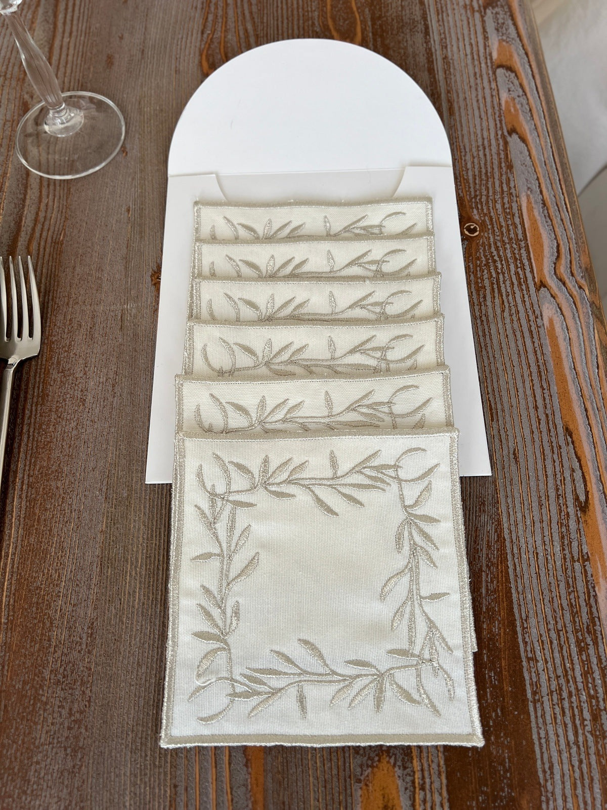 • Embroidered Cocktail Napkin  - 6 Pieces - 14x14 cm