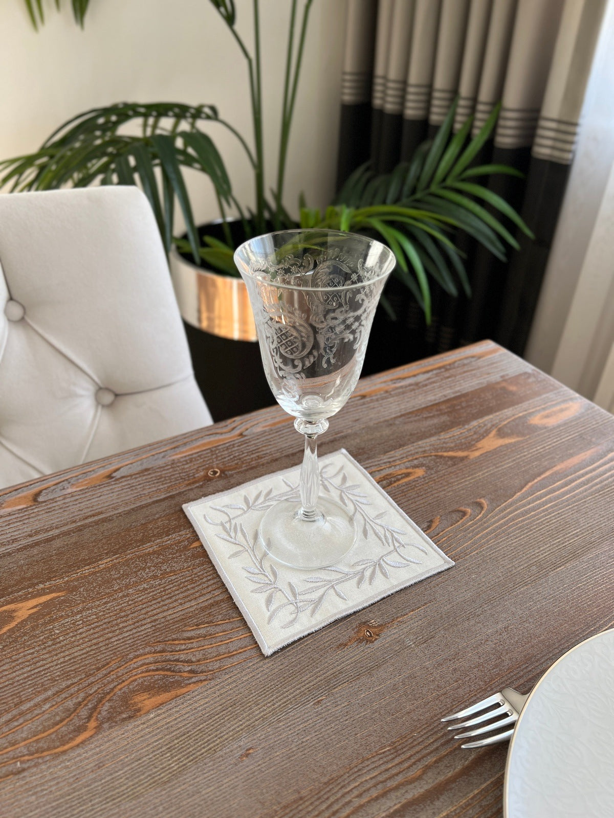 • Embroidered Cocktail Napkin  - 6 Pieces - 14x14 cm