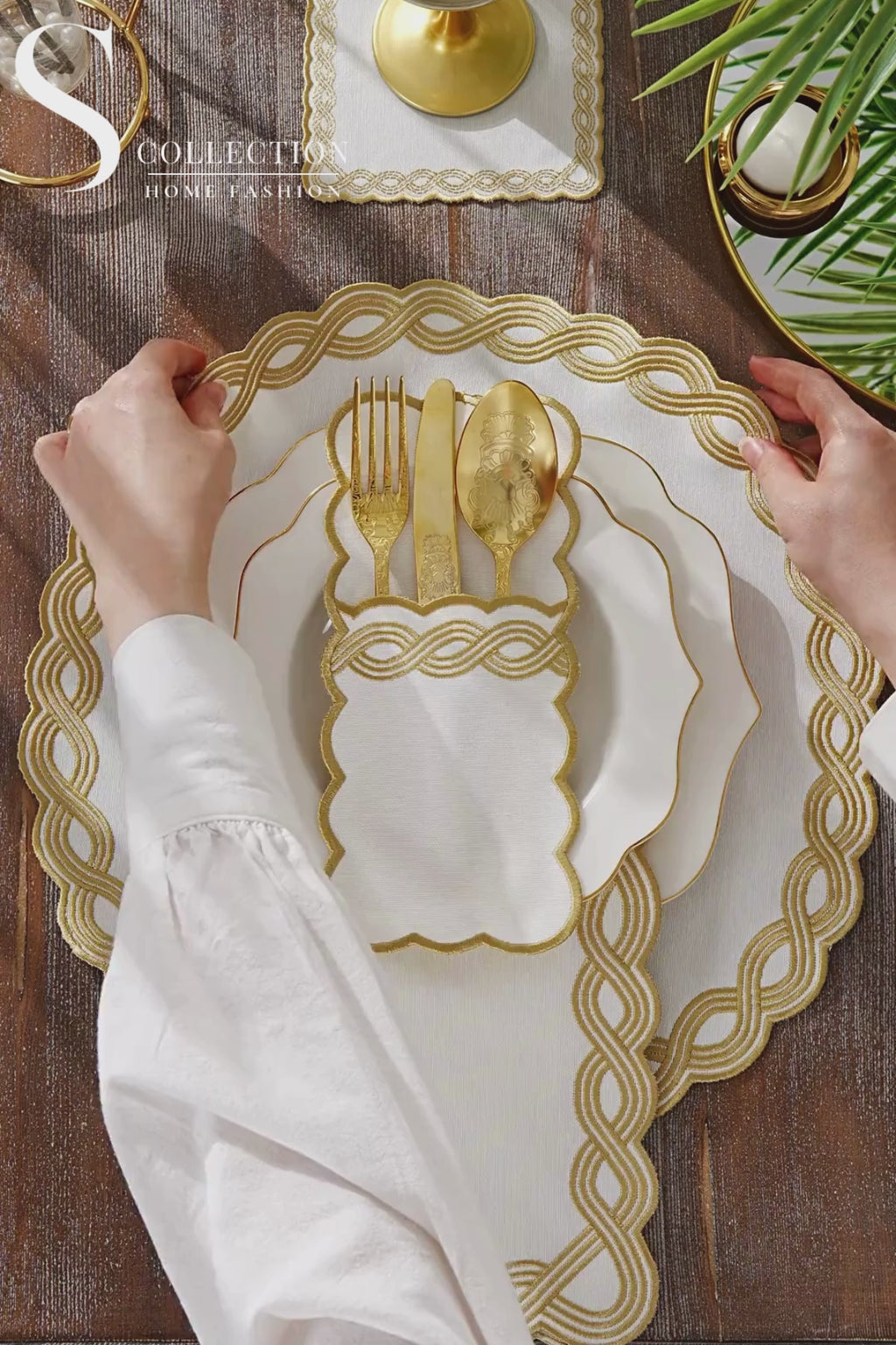 Ocean Braid Gold Design Placemat Set - Waterproof Fabric - 6 Persons - 24 Pcs. Full Set