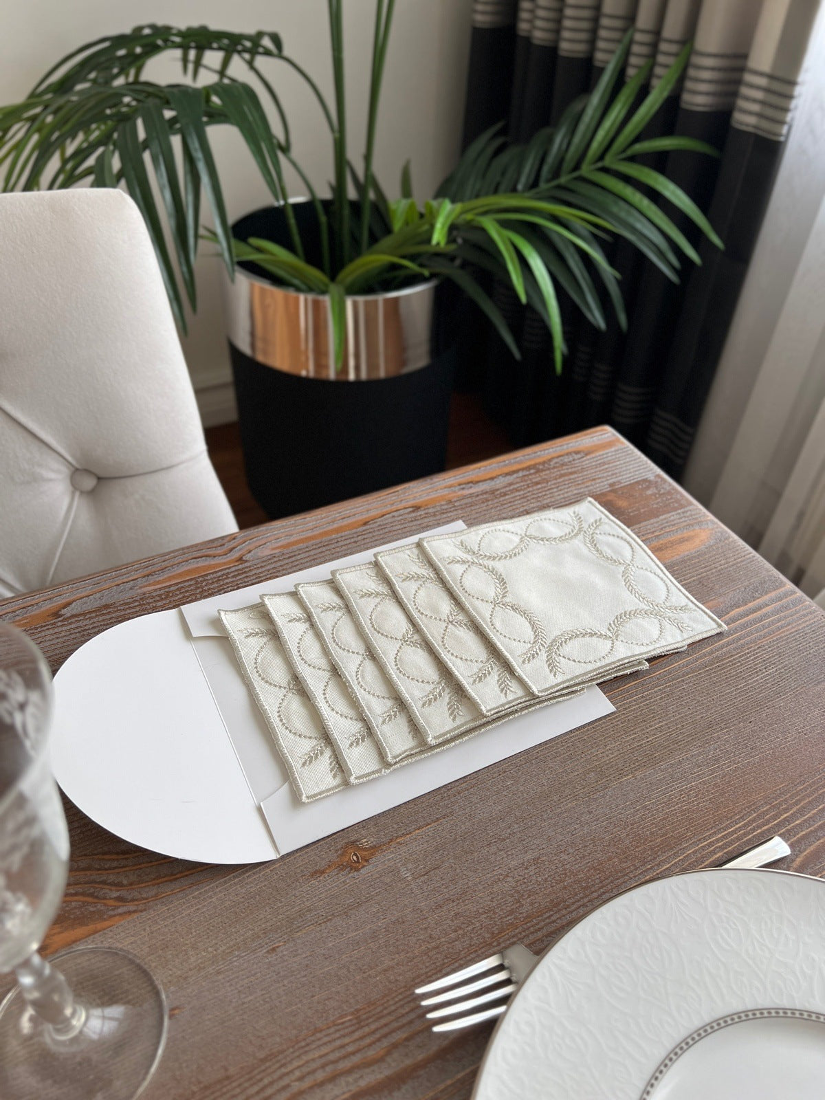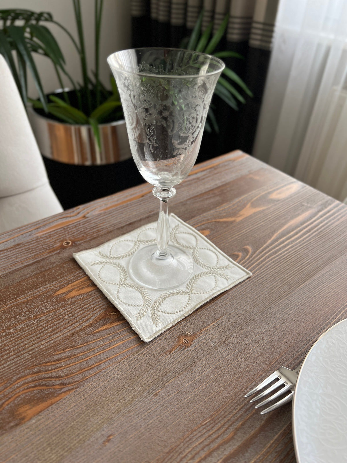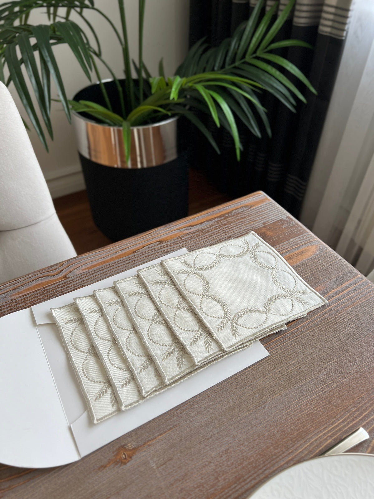 • Embroidered Cocktail Napkin  - 6 Pieces - 14x14 cm