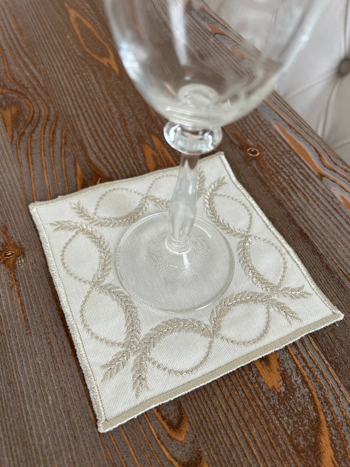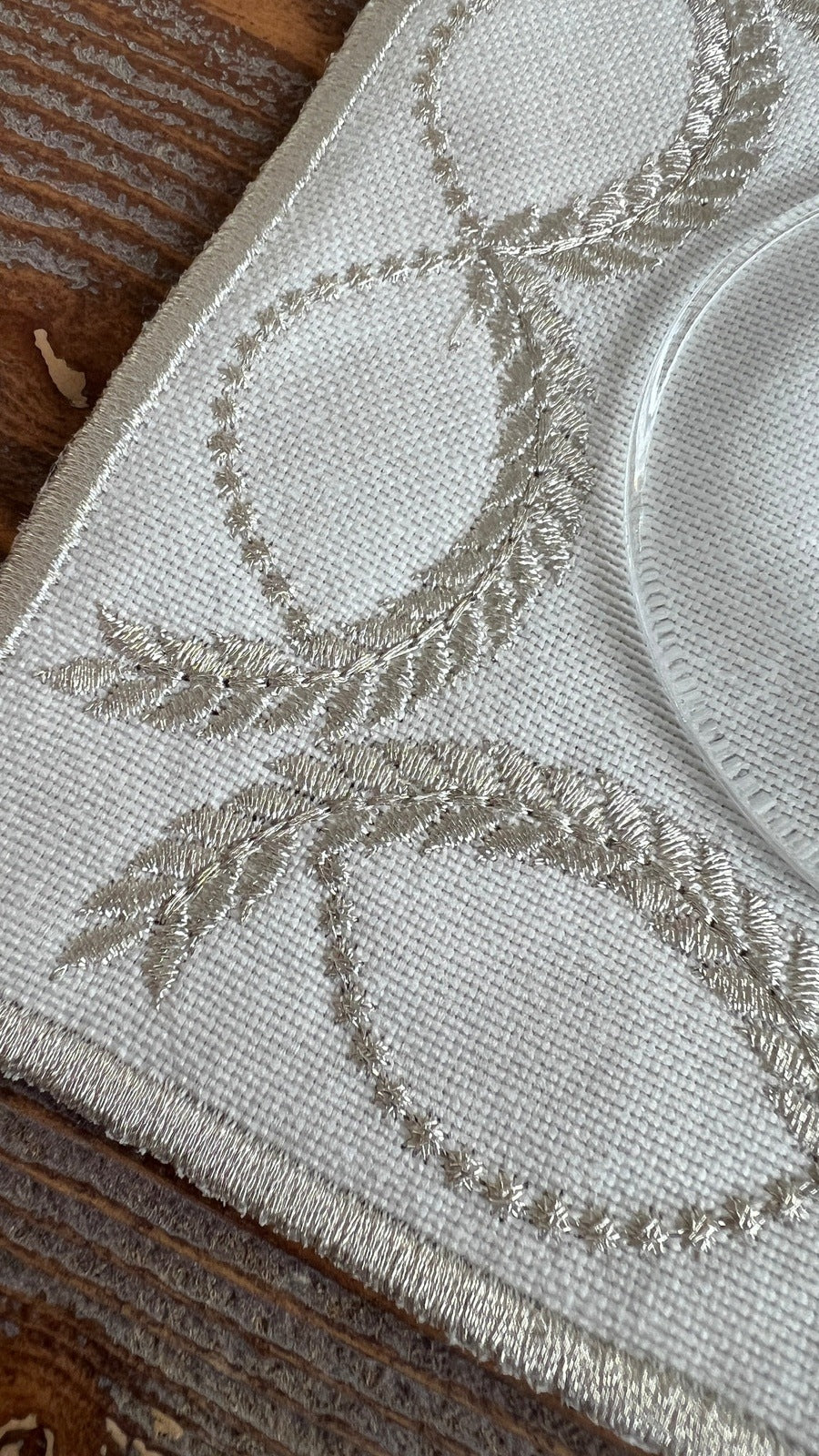 Olive Branch Design Cocktail Napkin - Waterproof Fabric - Shine Silver Embroidered