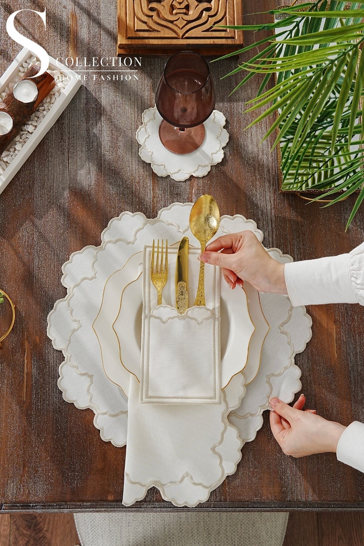 24-Piece Embroidered Set for 6 People