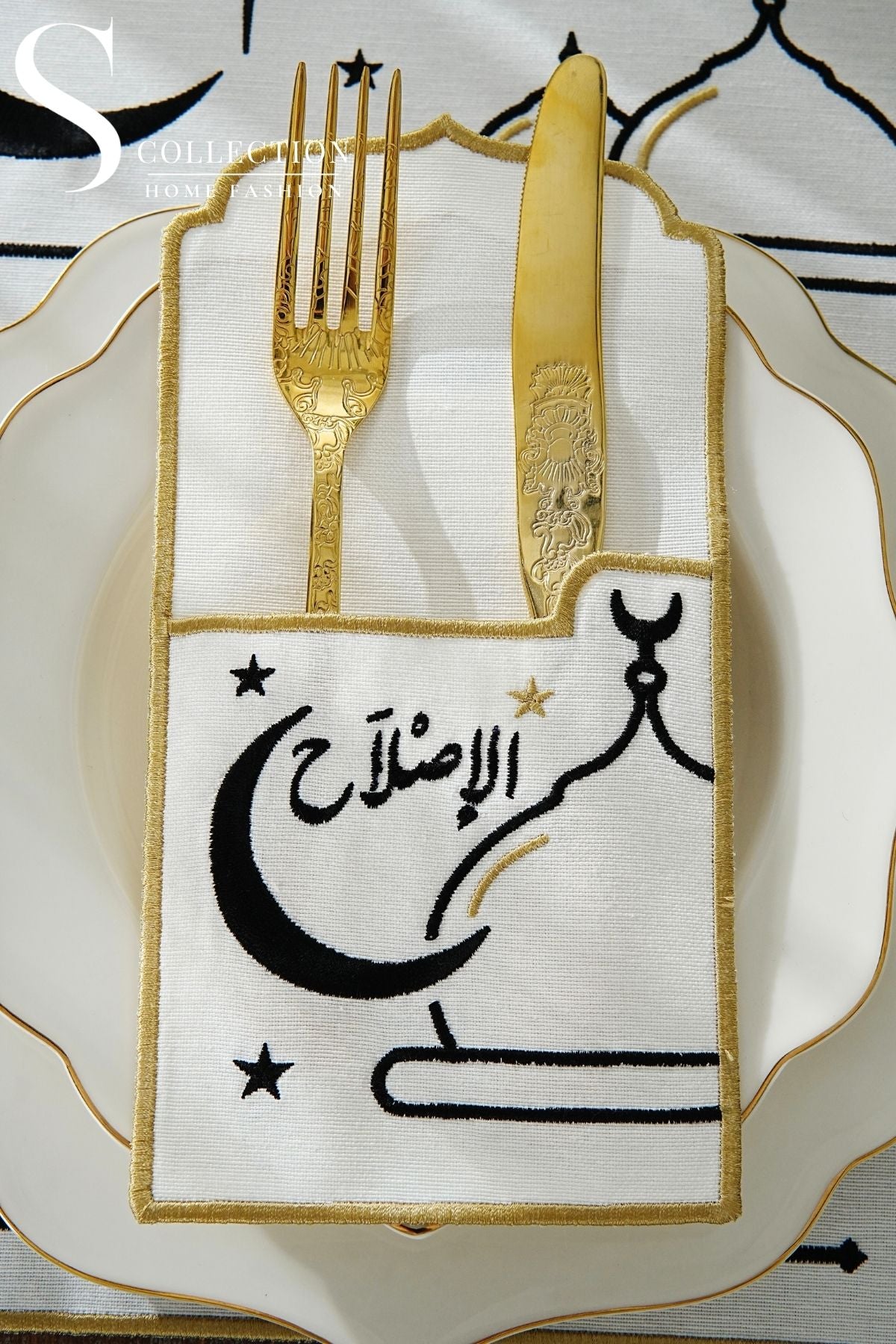 Designed especially for 🌙 Ramadan tables, this set includes cutlery pockets featuring six different meaningful messages.