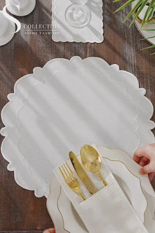 Tansy Off White Design Placemat Set - Waterproof Fabric - 6 Persons - 24 Pcs. Full Set